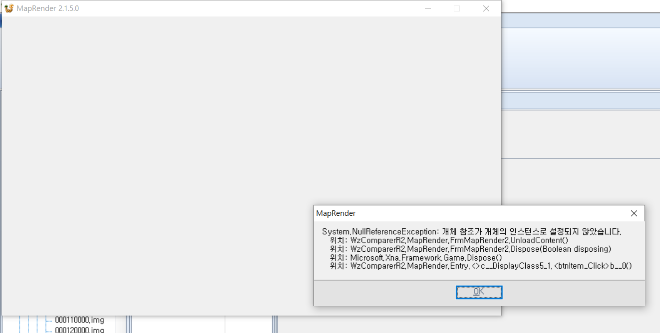WzComparer에서 MapRender가 아래와 같이 실행되지 않는 경우