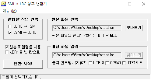 혹시나 해서 SMI를 LRC 파일로 변환해주는 툴을 누군가 만들지 않았을까 했는데, 검색해보니 제작해서 올려주신 분이 계셨다. 아래 링크로 들어가면 최신 버전을 다운받을 수 있다. 제작자분 덕분에 아주 효율적인 작업이 가능할 듯하다.